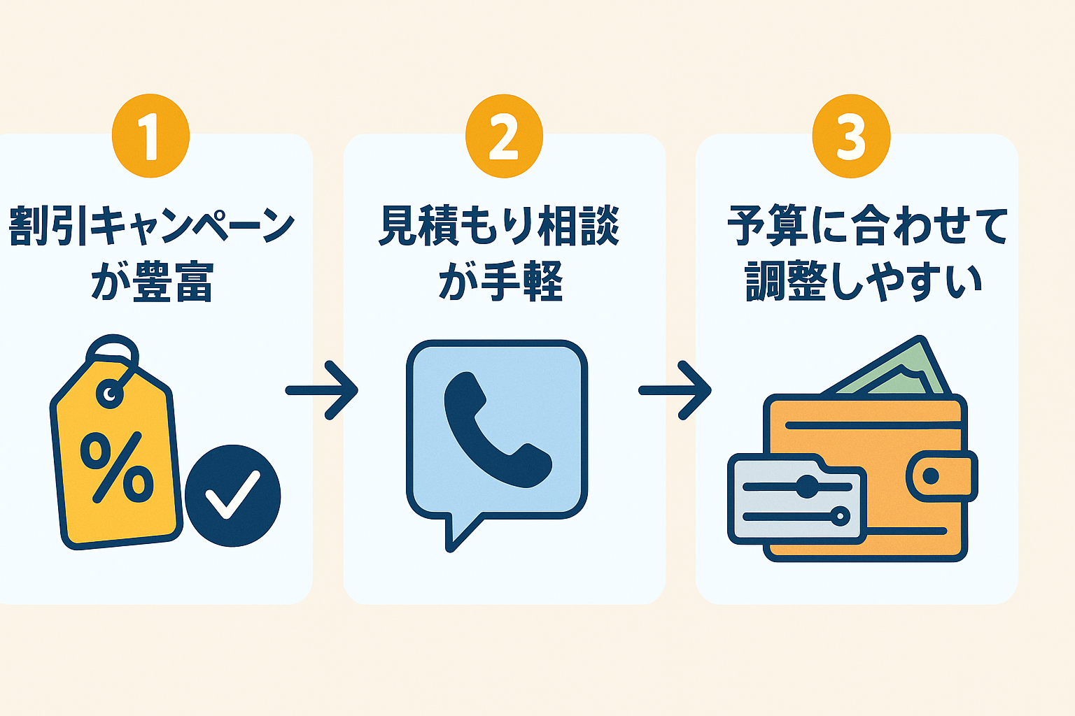 | インターネット割引 | Webから予約・見積もりを依頼するだけで適用 |